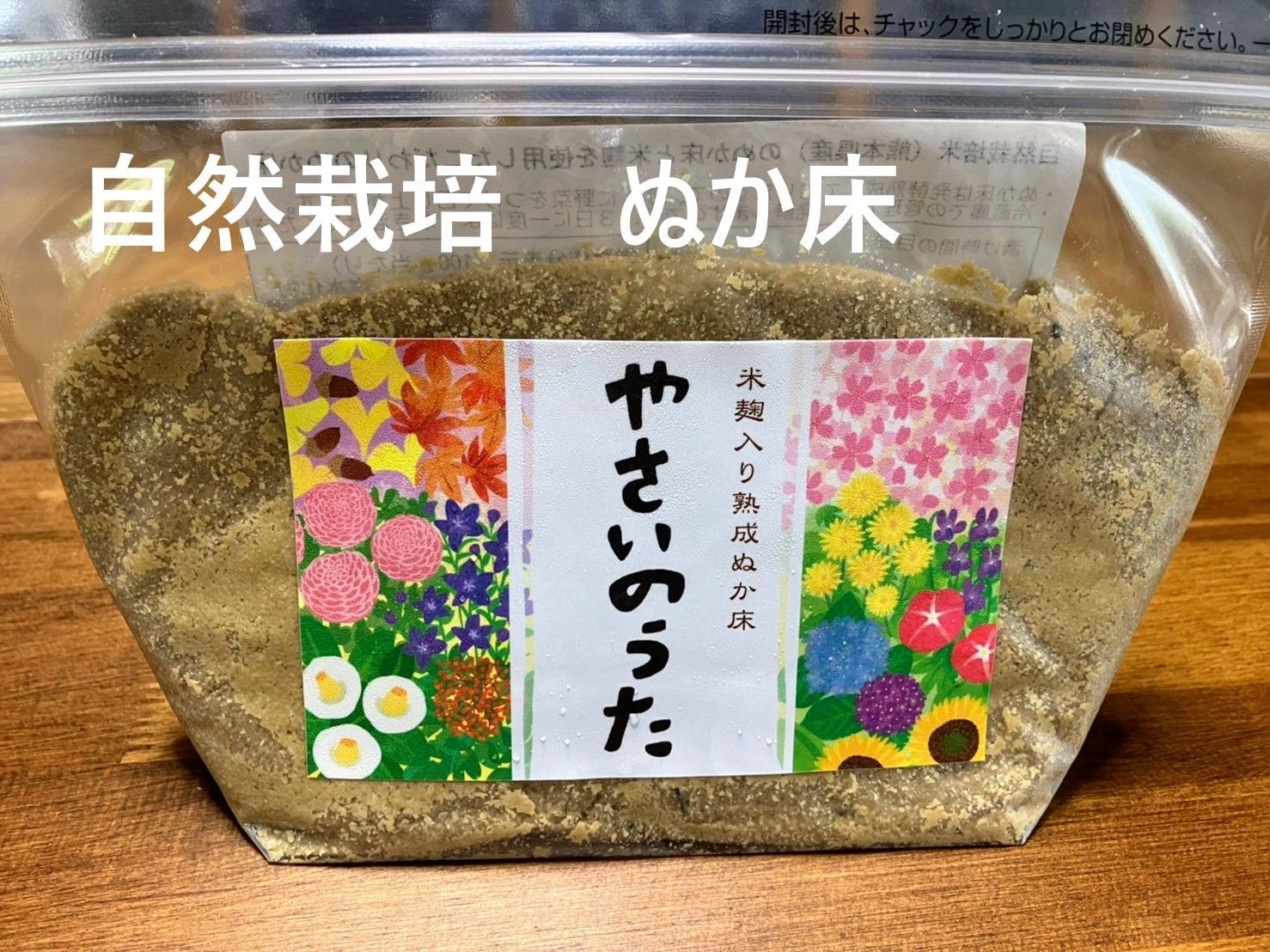 熊本県産自然栽培米のぬかと米麹使用。昆布、椎茸、かつお節の旨味たっぷり!冷蔵庫で簡単管理、すぐに始められる発酵ぬか床「やさいのうた」です。おいしいぬか漬けをすぐ…